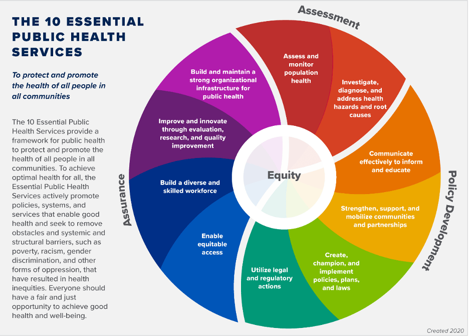 2. Revised 10 Essential Public Health Services, launched virtually by the de Beaumont Foundation and Public Health National Center for innovations on 9/9/2020. Available at http://www.cdc.gov. Background information of steps leading to the revision of guidance available at http://www.PHNCI.org